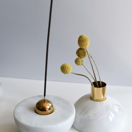 گلدان سنگ دو تکه دارای گوی برنجی برای استفاده به صورت گلدان و همچنین جاعودی به صورت همزمان